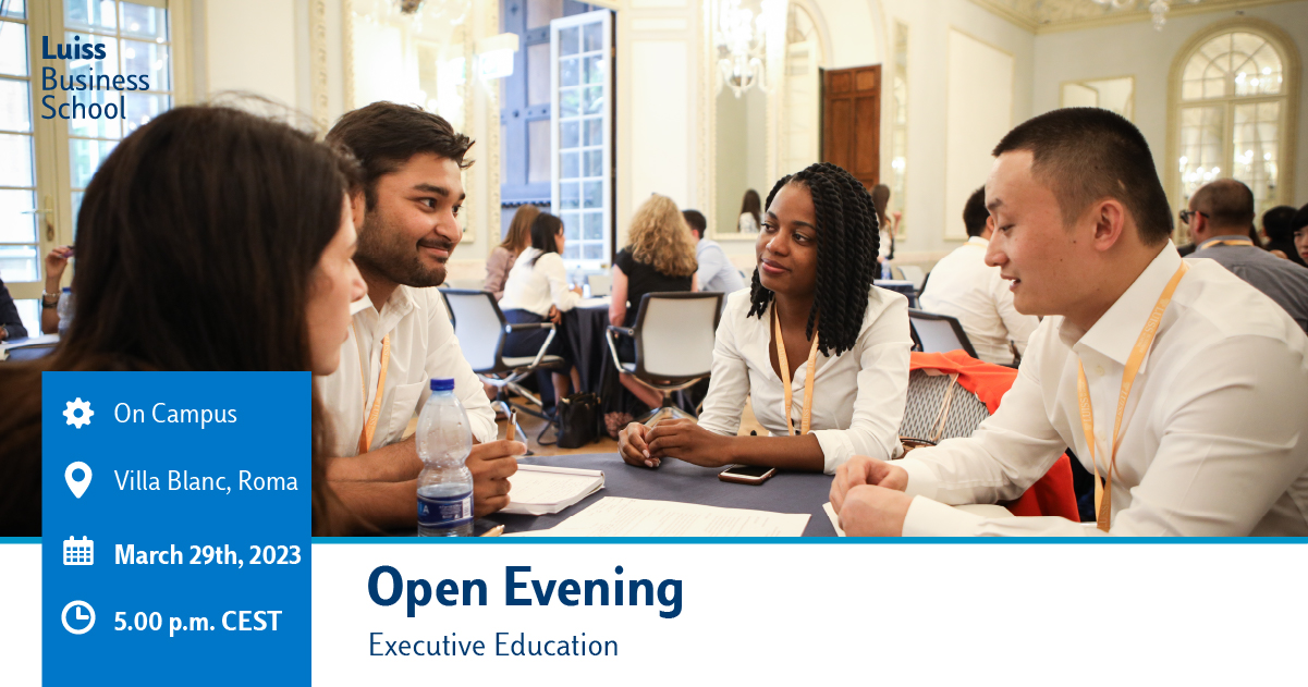 On March 29th, 2023, Luiss Business School hosts the Open Evening to present the Executive Education offered at the Campus in Rome, Milan, and Belluno.